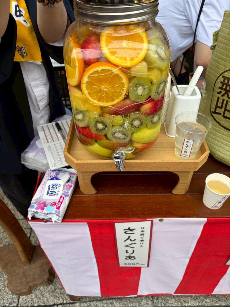 会場では、日本酒をフルーツに漬けたサングリアを飲みながら、屋台飯を楽しむという贅沢な時間も過ごしました。