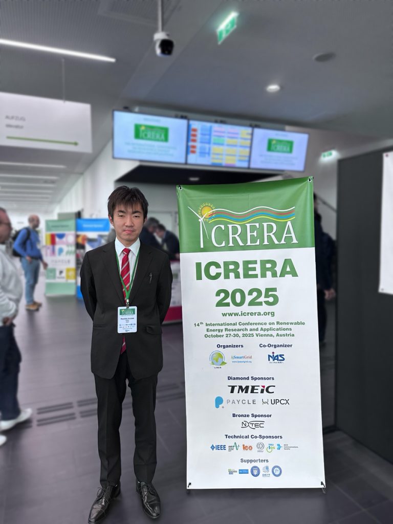 私は先月の10/27~30にオーストリアのウィーンで行われたICRERA 2025(再エネの応用に関する国際会議)に参加してきました。初めての国際会議かつ初めての海外だったので色々な経験ができて非常に有意義な経験ができました。日下研は私1人だけだったので,伊東研に同行させてもらいました。