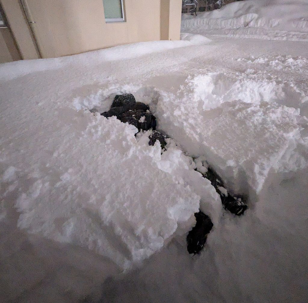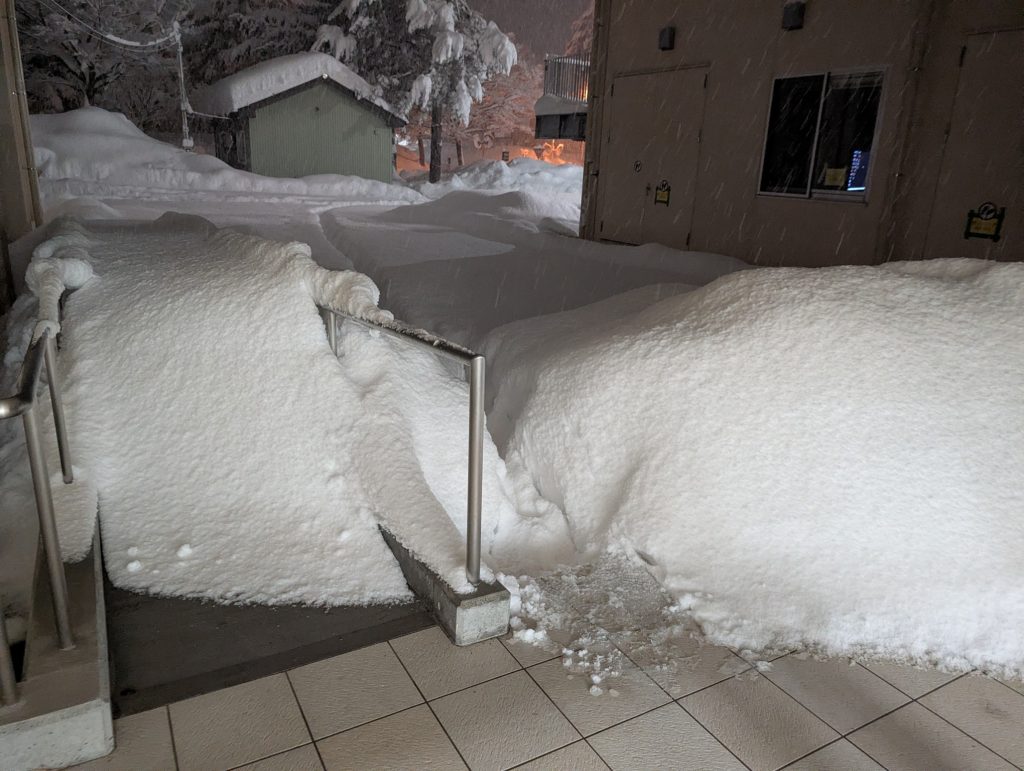 降るとは聞いてたしスキー場とかで見たことがあるハズなんですが,こんな大雪の中で生活するのは初めてなのではしゃいで写真を撮りまくってます。家族LINEに写真何枚送ったことか。